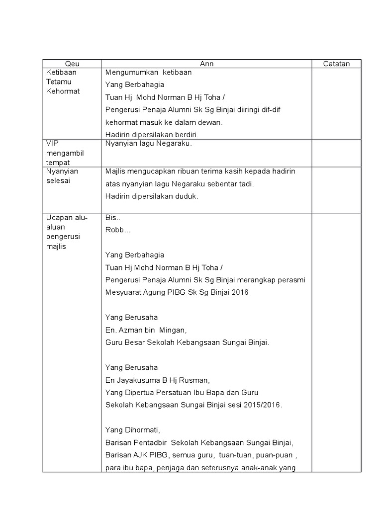 Ucapan perasmian mesyuarat agung tahunan pas cwgn sitiawan barat 2011. Masa cue ann 5 11.33 am orang asing dvd 1. Yb dato' mohd amar bin nik abdullah. Teks pengacara mesyuarat agung pibg by kementerian pelaj. •yang dihormati dan disanjung tinggi puan pengerusi/pengacara majlis: