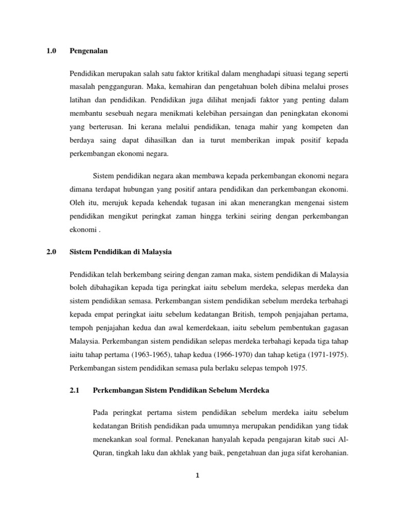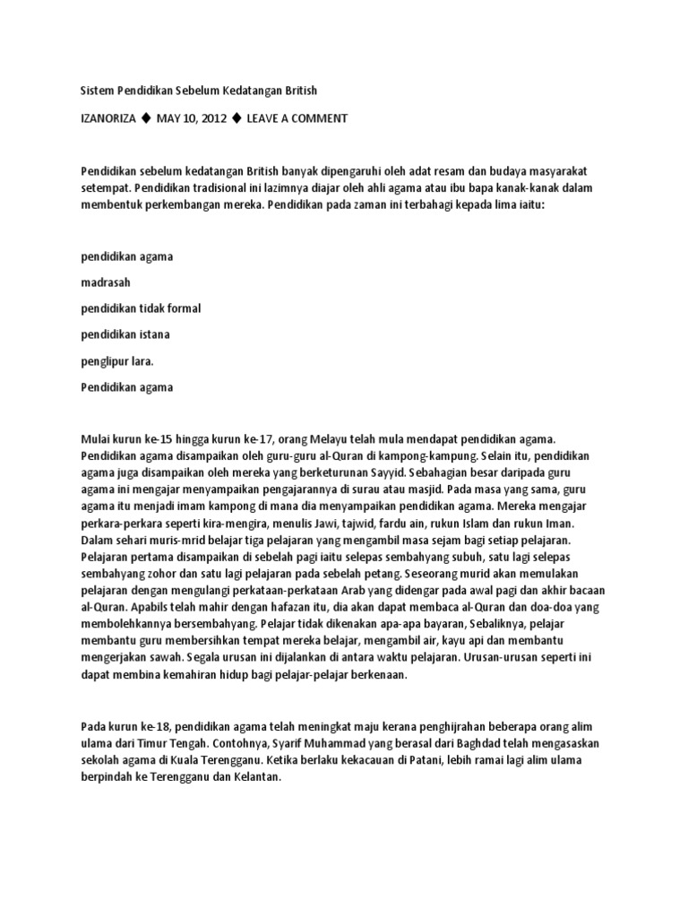 Doc System Pendidikan Malaysia Sebelum Merdeka Kong Xiang Sam Academia Edu from 0.academia-photos.com Sistem pendidikan di skotlandia didasari pada manifesto utama dari penganut protestan. Salah satu contoh bagian electrical adalah lampu yang memberi penerangan terhadap kendaraan. Pagi selepas sembahyang subuh pelajaran kedua. Pendidikan adalah usaha sadar dan terencana untuk mewujudkan suasana belajar dan proses pembelajaran agar peserta didik secara aktif mengembangkan potensi dirinya untuk memiliki kekuatan spiritual keagamaan, pengendalian diri, kepribadian, kecerdasan, akhlak mulia, serta keterampilan. This was later severely effective to the lives of many tribes. Sempadan negeri melayu sebelum campur tangan british. Apat pendidikan di surau, masjid dan sekolah. Ini kerana sistem pendidikan yang sedia ada di malaysia hanya pada peringkat memupuk perpaduan tetapi masih belum matang dan berjaya nampak hasilnya di kalangan rakyat.